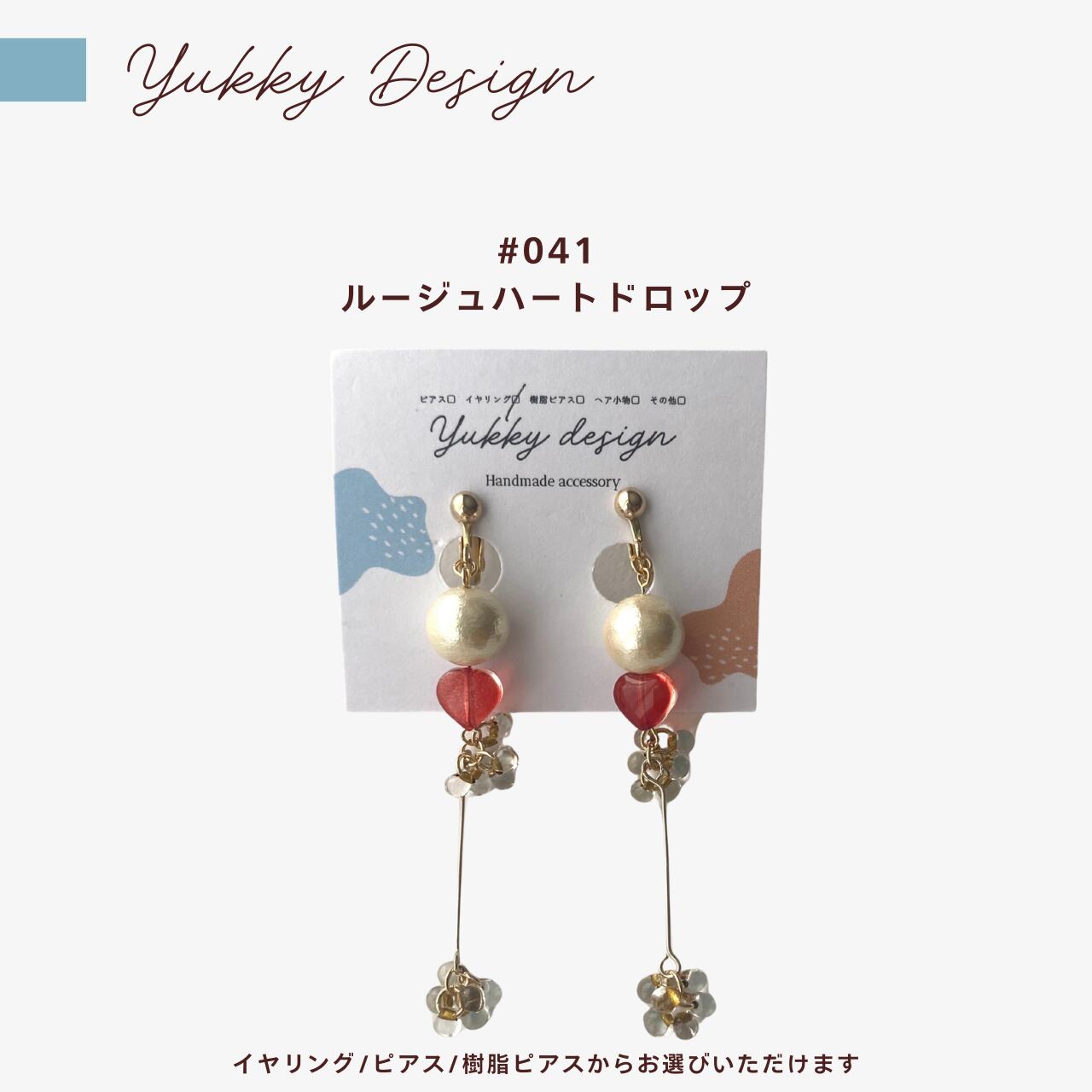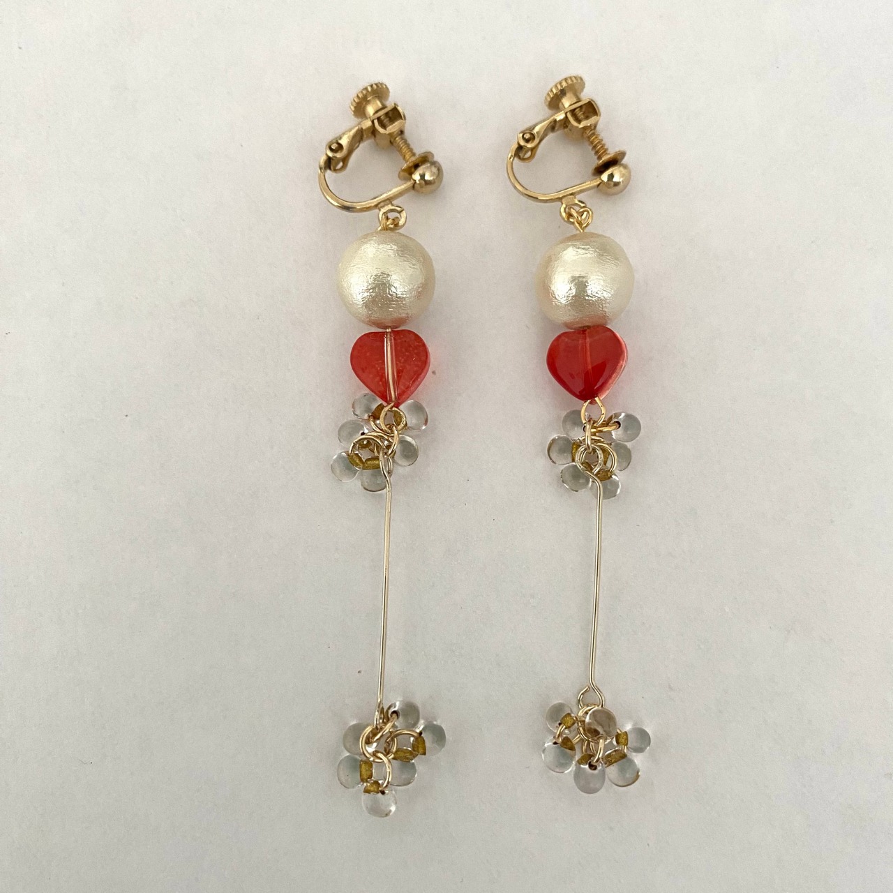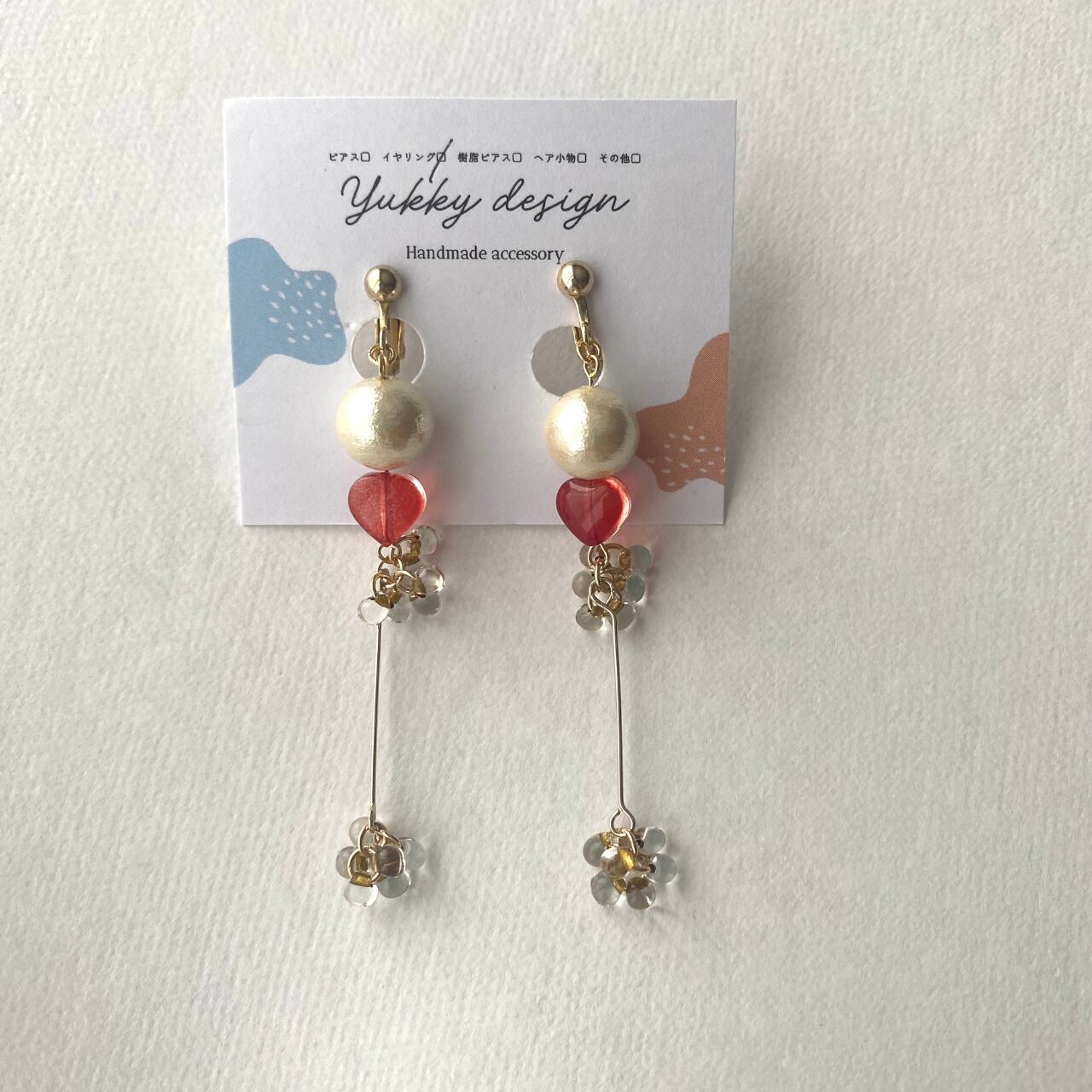 赤いハートのビーズとコットンパールがポイント!