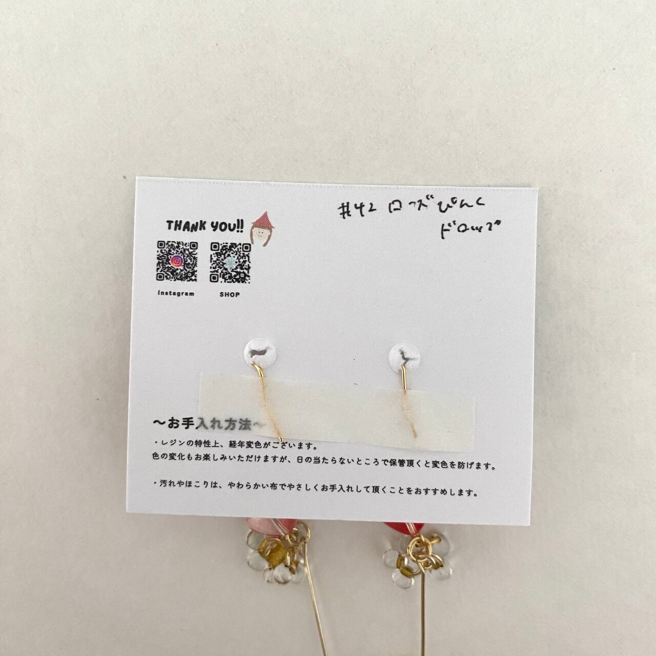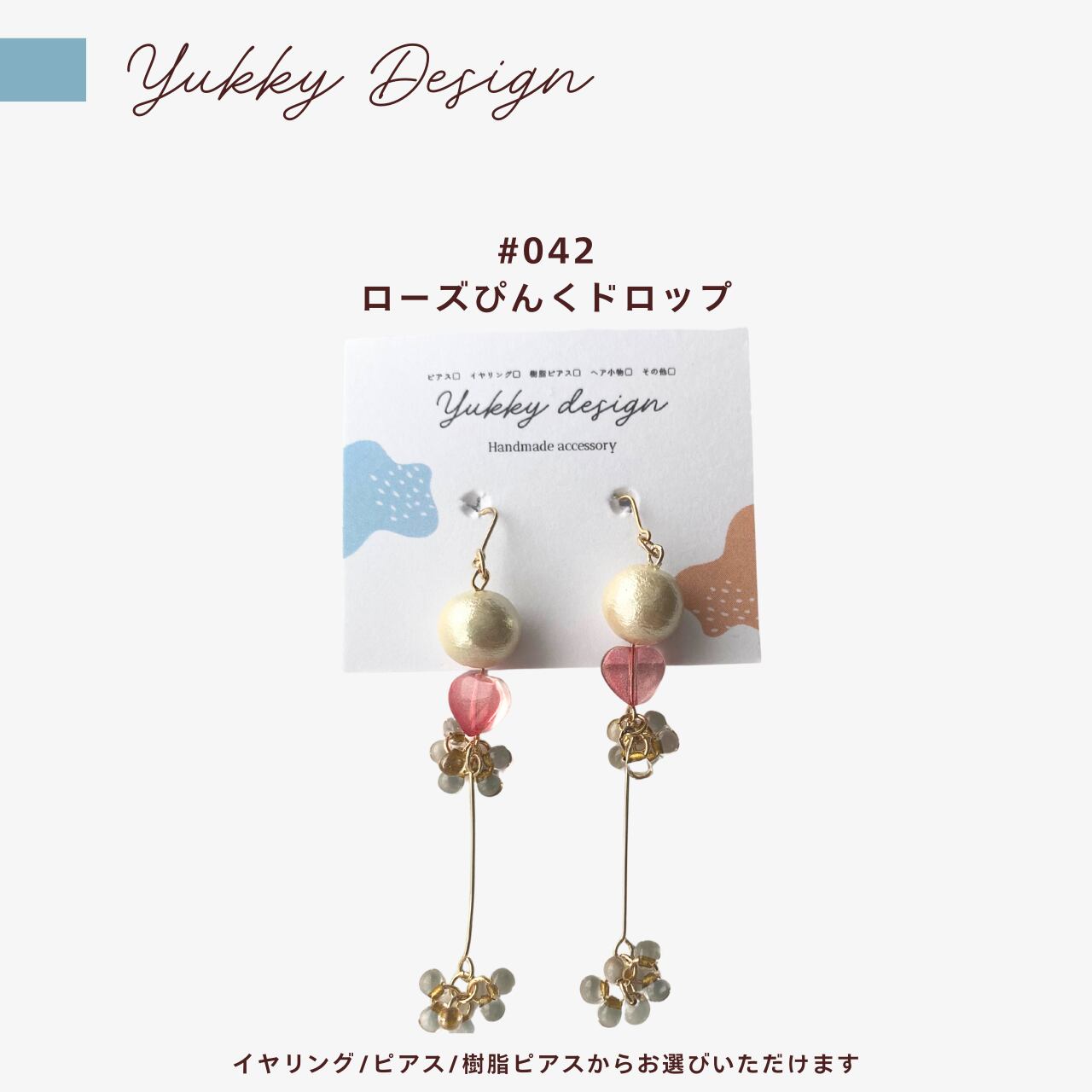 【イヤリング/ピアス】ローズぴんくドロップ