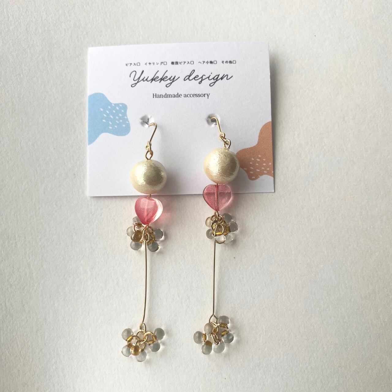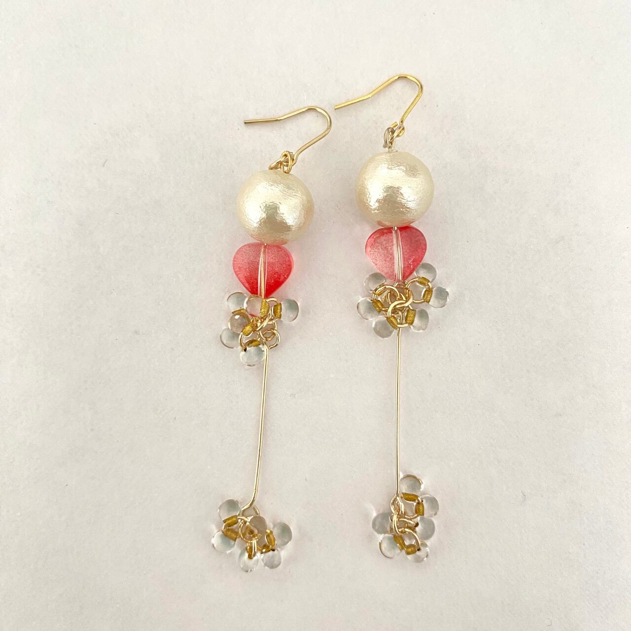 ピンクのハートビーズとコットンパールがポイント!