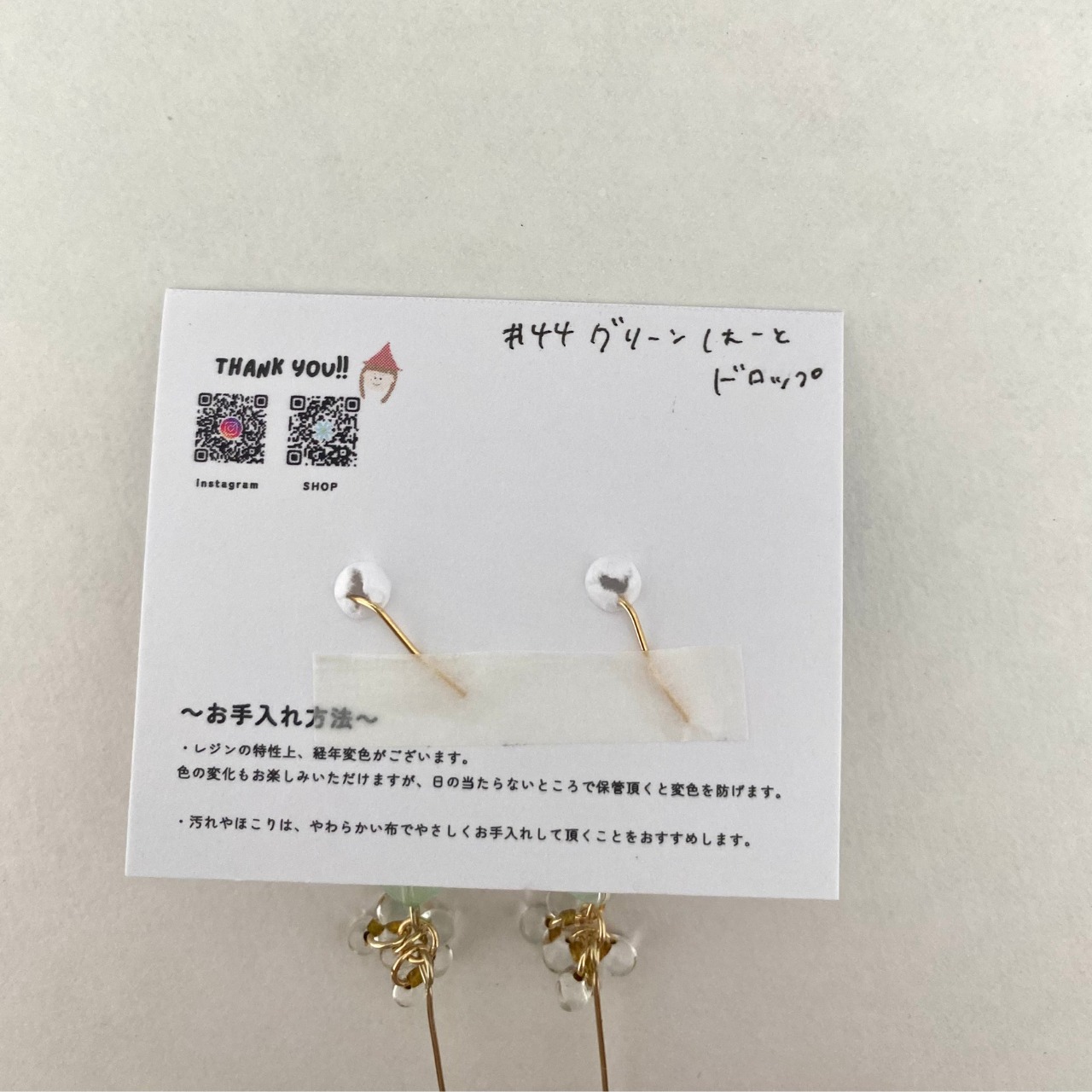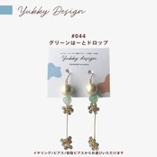 【イヤリング/ピアス】グリーンはーとドロップ