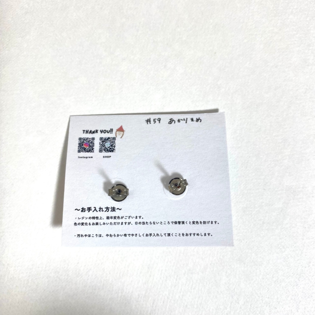 樹脂製の小さなキャッチも一緒にお付けいたします。