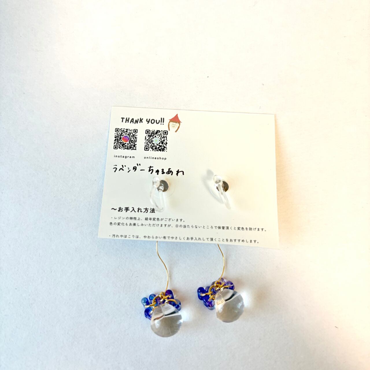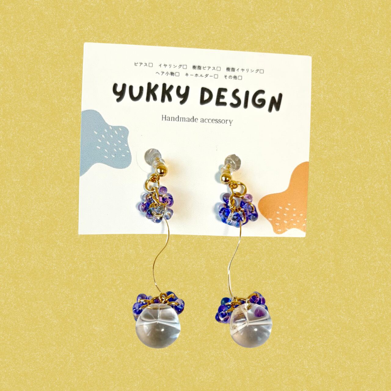透明色の樹脂製イヤリングを使用しています。