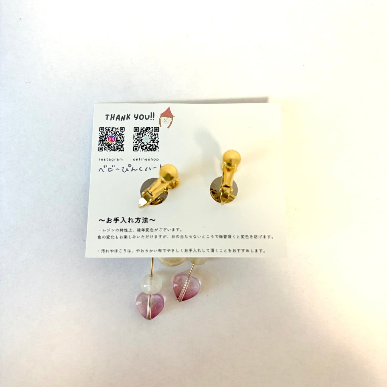 【イヤリング/ピアス/樹脂イヤリング/樹脂ピアス】ベビーぴんくハート