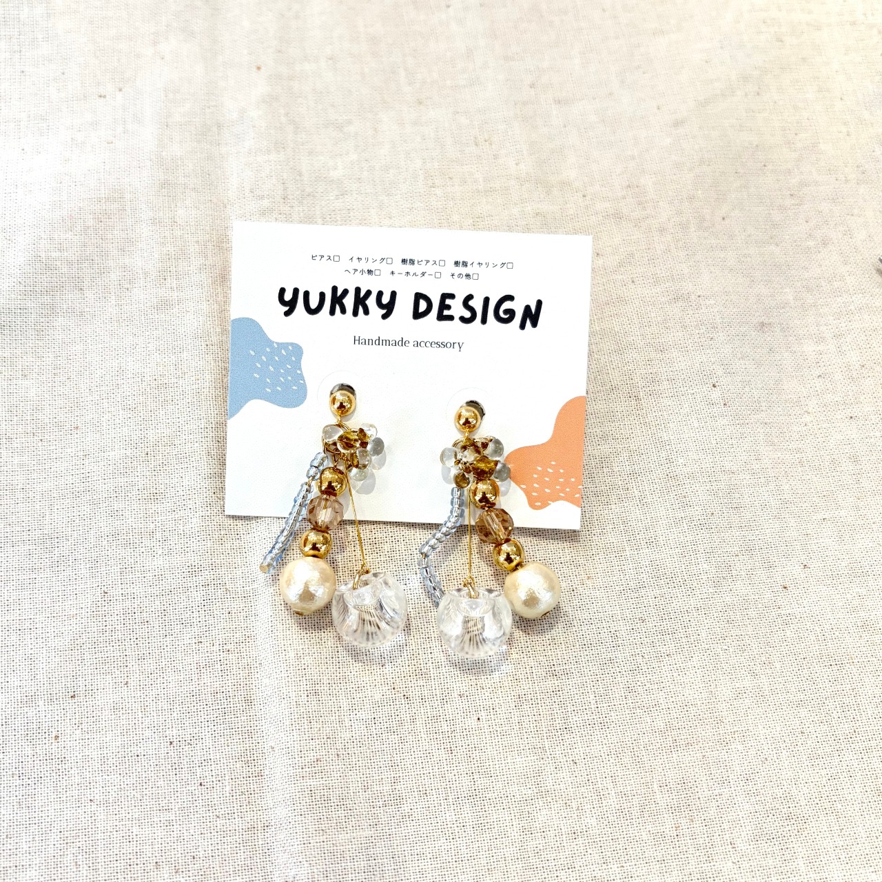 透明色の樹脂製イヤリングを使用しています。