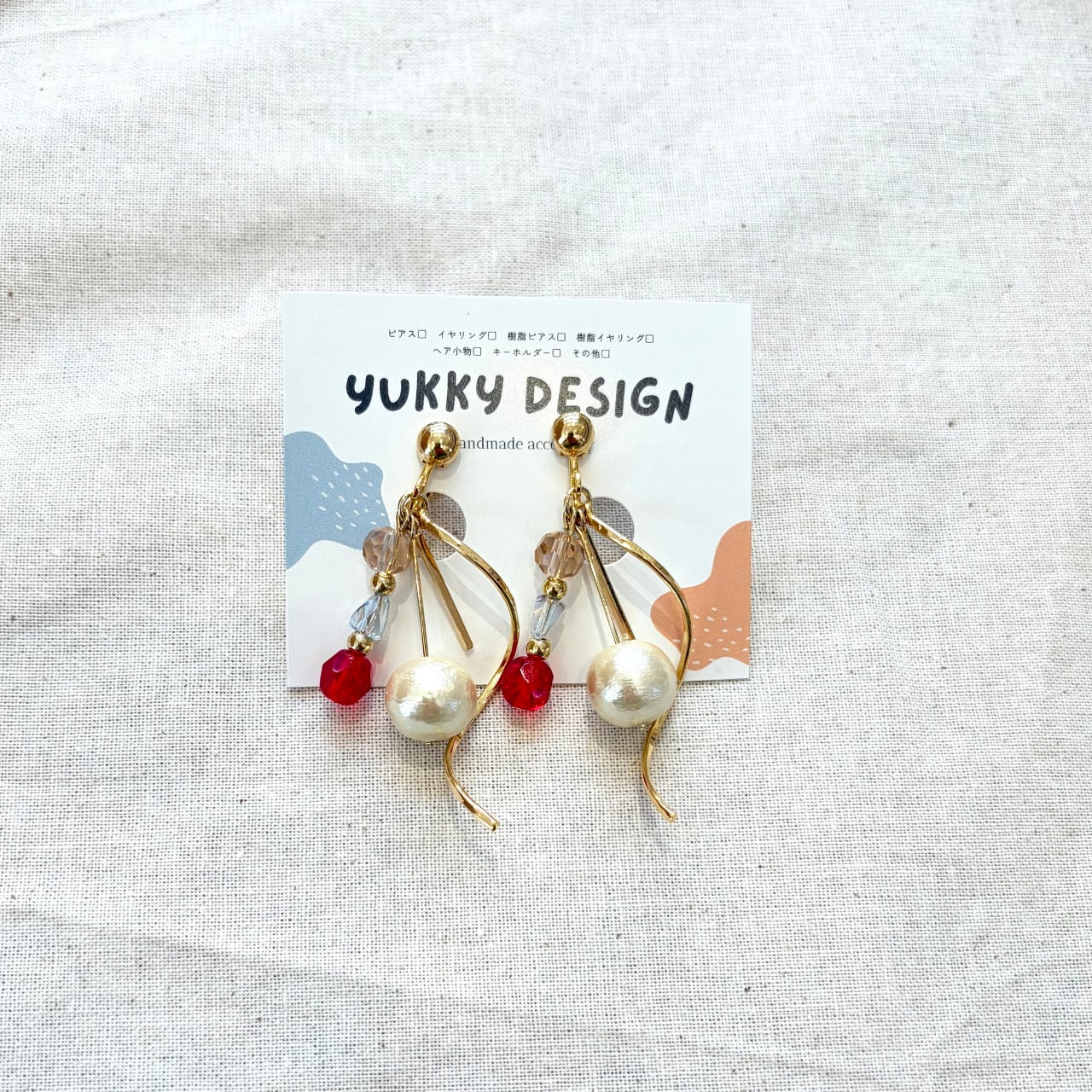 【イヤリング/ピアス/樹脂イヤリング/樹脂ピアス】あかい実ウエーブ