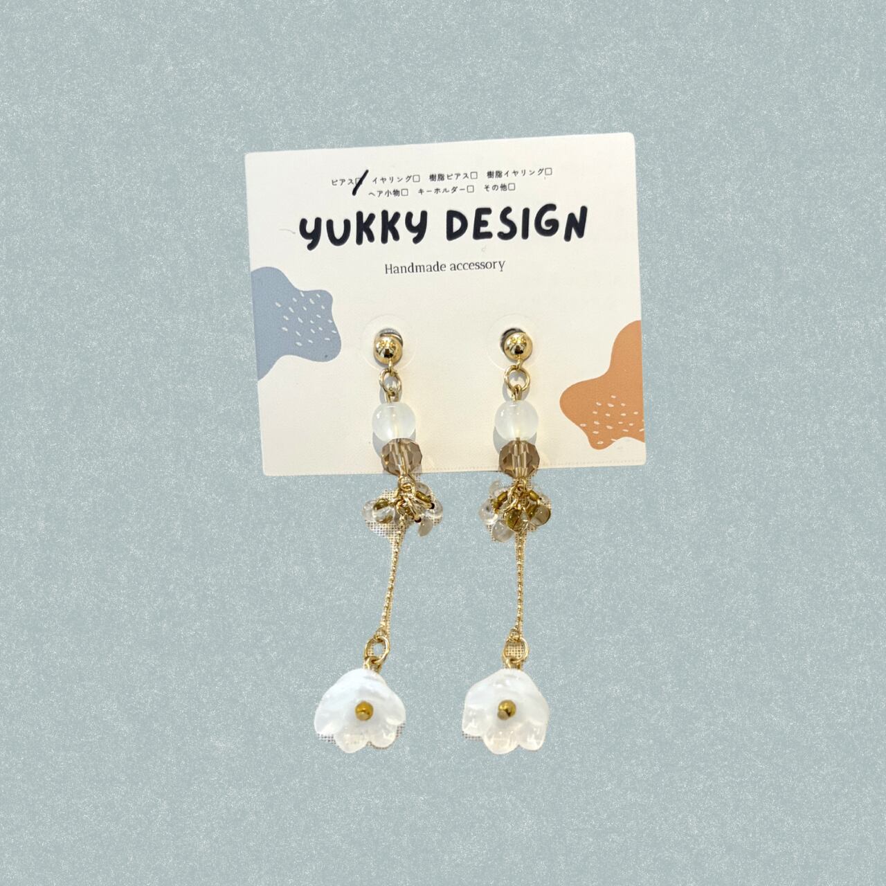 【イヤリング/ピアス/樹脂イヤリング/樹脂ピアス】お花のゆらゆら/ホワイトゼリー